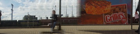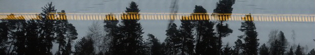 Modern digital cameras offer a "panorama function", which permits taking a 180° view of the surroundings by moving the camera slowly in one direction. I use this function to record a moving environment, relative to me, as revealed when looking out a train window. This is possible only in a narrow speed range, as the frenzied movement of the scenery and other objects along the railway line quickly overstrain the camera. By a slight camera movement, I can sometimes counteract the failure of the automatic mechanism. The panorama function is not intended for such recordings and the technique provides surprising and unexpected results. Often, recording will restart at a certain point again and again, resulting in fractures and offsets in the pictures. Briefly appearing objects are only partially captured; regular structures suddenly take an irregular course. This results in an alteration of the scenery that is discovered only through a second glance.